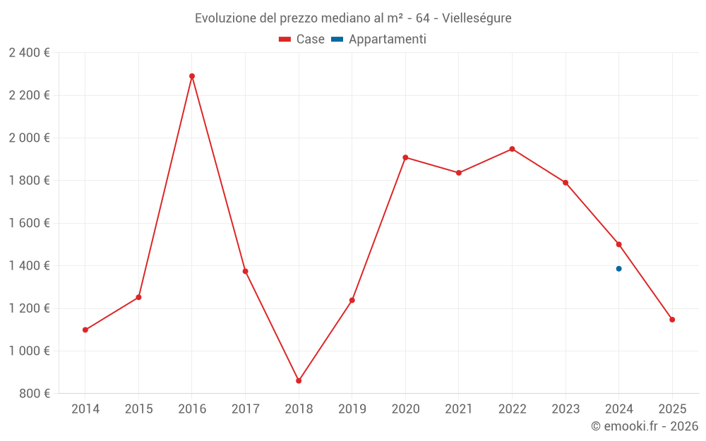 Attenzione, ultimo anno incompleto. Le proiezioni sono effettuate in base alle proporzioni tra semestri dell'anno precedente a livello dipartimentale/nazionale e per tipo di proprietà.