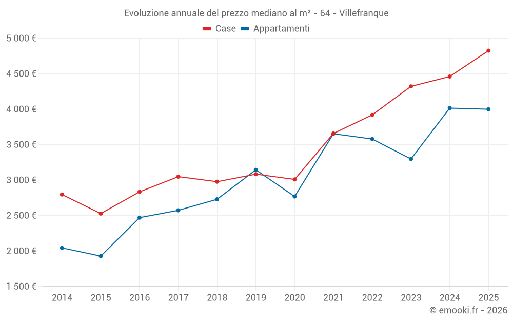 Qual è il prezzo al m2 delle case in Villefranque?