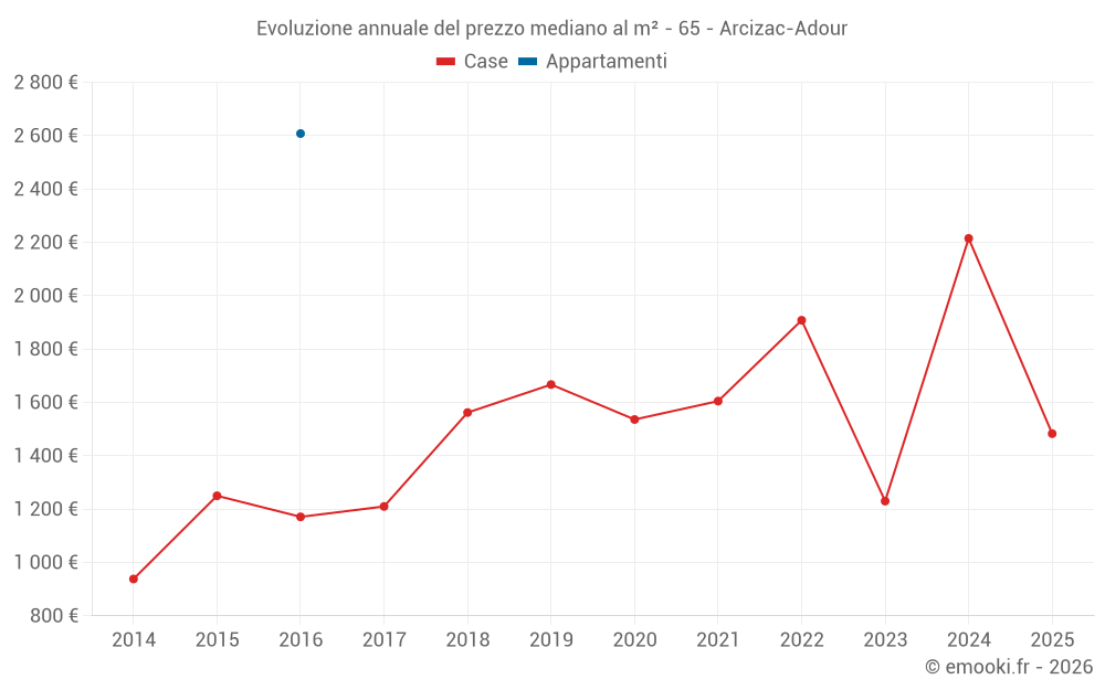 Evoluzione del prezzo mediano al m² degli appartamenti