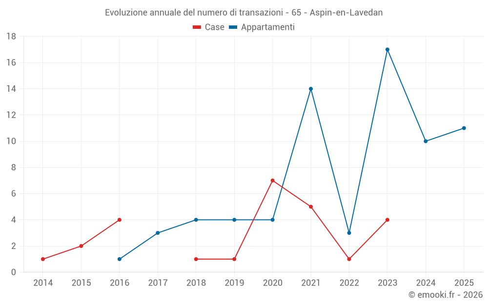 Il prezzo mediano sulle 26 transazioni di appartamenti degli ultimi 24 mesi nel comune di Aspin-en-Lavedan era di 1 110 € al metro quadrato per un valore patrimoniale mediano di 34 000 €. In questo periodo il 60% delle transazioni era tra 906 e 1 364 € al metro quadrato (dal 2° all'8° decile).