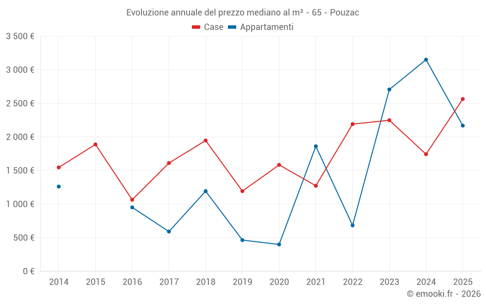 Qual è il prezzo al m2 delle case in Pouzac?