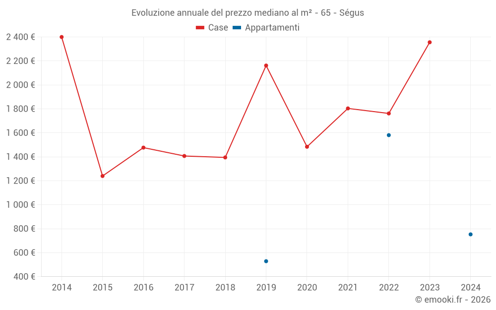 Evoluzione del prezzo mediano al m² degli appartamenti