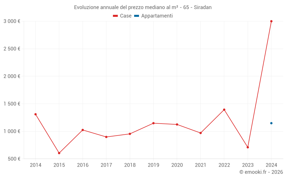 Attenzione, ultimo anno incompleto. Le proiezioni sono effettuate in base alle proporzioni tra semestri dell'anno precedente a livello dipartimentale/nazionale e per tipo di proprietà .