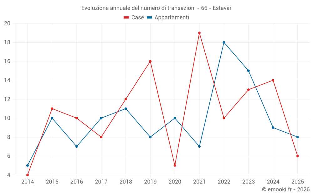 Il prezzo mediano sulle 23 transazioni di appartamenti degli ultimi 24 mesi nel comune di Estavar era di 3 008 € al metro quadrato per un valore patrimoniale mediano di 180 000 €. In questo periodo il 60% delle transazioni era tra 2 373 e 4 527 € al metro quadrato (dal 2° all'8° decile).
