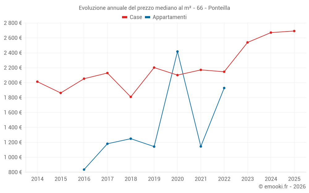 Qual è il prezzo al m2 delle case in Ponteilla?