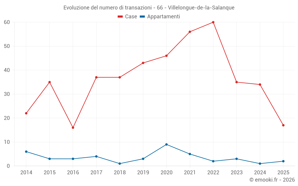 Il prezzo mediano sulle 36 transazioni di case degli ultimi 12 mesi nel comune di Villelongue-de-la-Salanque era di 2 106 € al metro quadrato per un valore patrimoniale mediano di 151 500 €. In questo periodo il 60% delle transazioni era tra 1 627 e 2 607 € al metro quadrato (dal 2° all'8° decile).