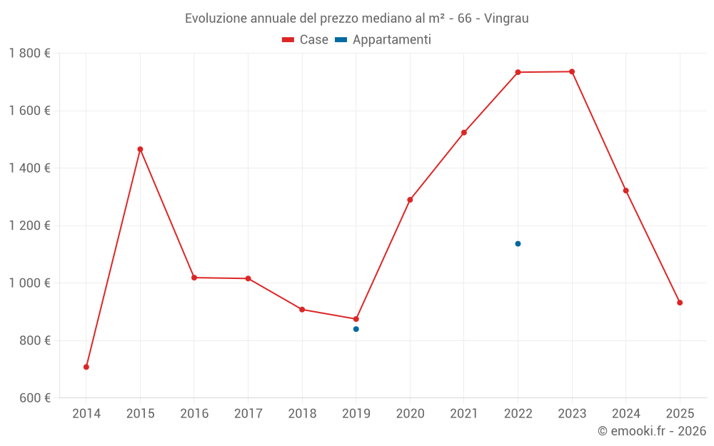 Qual è il prezzo al m2 delle case in Vingrau?