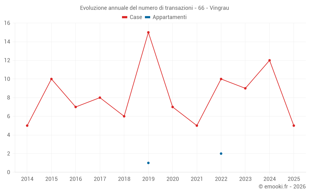 Il prezzo mediano sulle 23 transazioni di case degli ultimi 24 mesi nel comune di Vingrau era di 1 281 € al metro quadrato per un valore patrimoniale mediano di 110 000 €. In questo periodo il 60% delle transazioni era tra 915 e 2 515 € al metro quadrato (dal 2° all'8° decile).