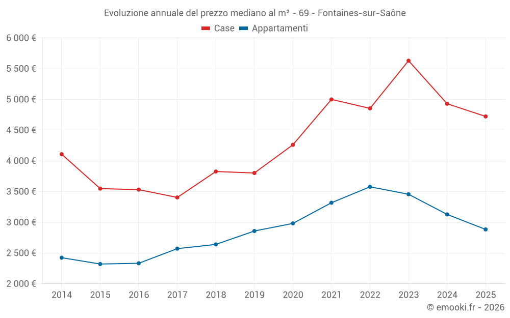 Qual è il prezzo al m2 delle case in Fontaines-sur-Saône?