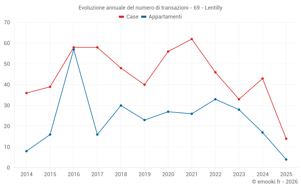 Il prezzo mediano sulle 36 transazioni di appartamenti degli ultimi 24 mesi nel comune di Lentilly era di 4 155 € al metro quadrato per un valore patrimoniale mediano di 241 500 €. In questo periodo il 60% delle transazioni era tra 3 316 e 4 412 € al metro quadrato (dal 2° all'8° decile).