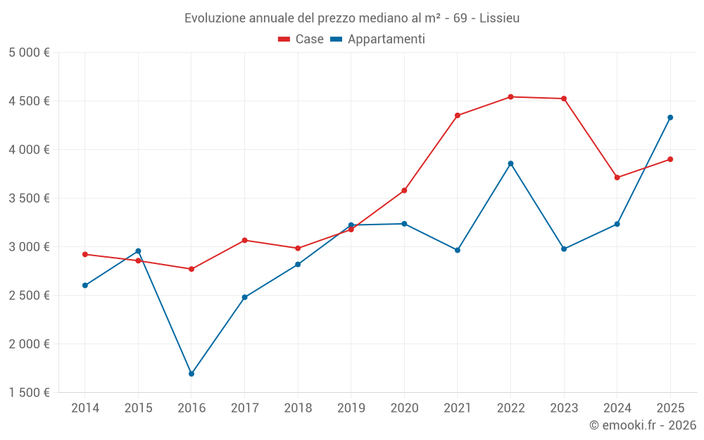 Il prezzo mediano sulle 27 transazioni di case degli ultimi 12 mesi nel comune di Lissieu era di 3 902 € al metro quadrato per un valore patrimoniale mediano di 432 500 €. In questo periodo il 60% delle transazioni era tra 3 168 e 4 599 € al metro quadrato (dal 2° all'8° decile).