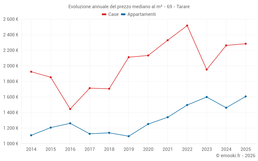 Qual è il prezzo al m2 delle case in Tarare?