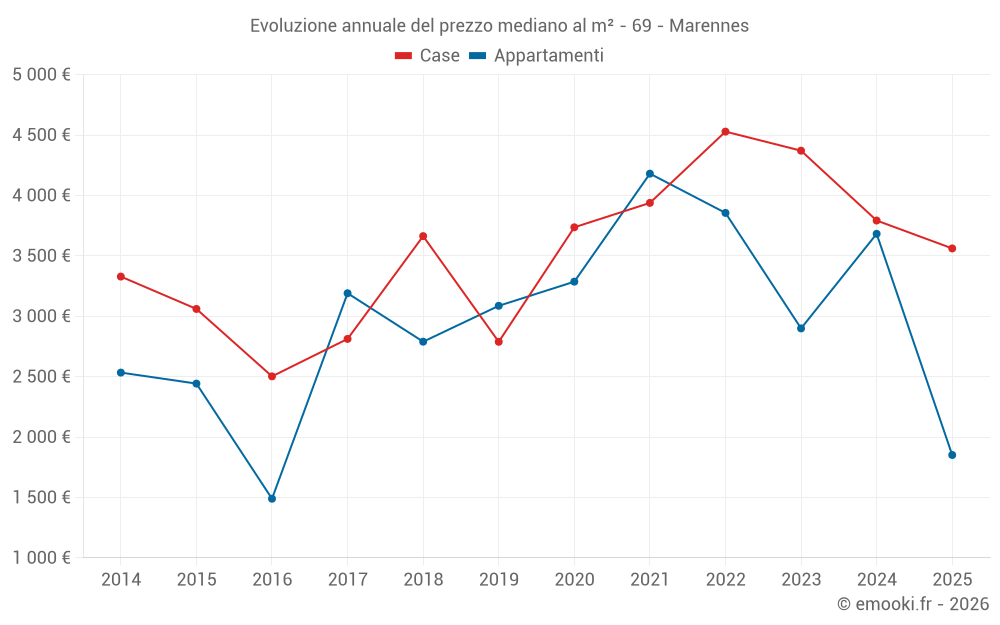 Qual è il prezzo al m2 delle case in Marennes?