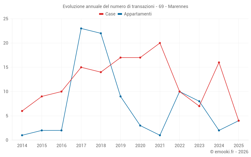 Il prezzo mediano sulle 25 transazioni di case degli ultimi 24 mesi nel comune di Marennes era di 3 843 € al metro quadrato per un valore patrimoniale mediano di 310 000 €. In questo periodo il 60% delle transazioni era tra 2 749 e 4 682 € al metro quadrato (dal 2° all'8° decile).