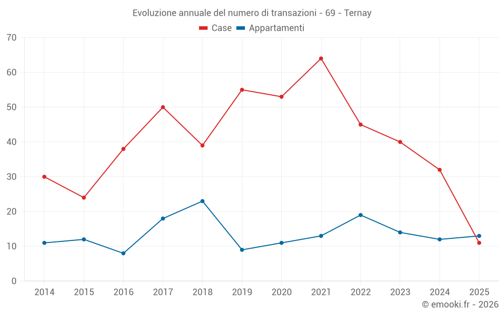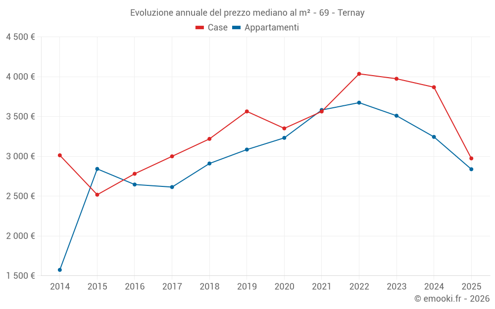 Il prezzo mediano sulle 26 transazioni di case degli ultimi 12 mesi nel comune di Ternay era di 3 589 € al metro quadrato per un valore patrimoniale mediano di 389 300 €. In questo periodo il 60% delle transazioni era tra 2 166 e 4 102 € al metro quadrato (dal 2° all'8° decile).