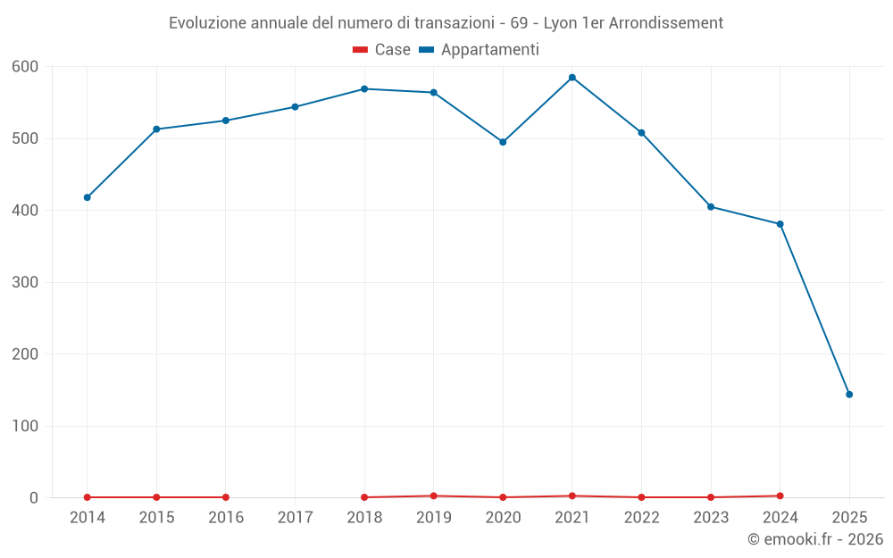 Il prezzo mediano sulle 58 transazioni di appartamenti degli ultimi 3 mesi nel comune di Lyon 1er Arrondissement era di 4 717 € al metro quadrato per un valore patrimoniale mediano di 244 400 €. In questo periodo il 60% delle transazioni era tra 3 719 e 5 731 € al metro quadrato (dal 2° all'8° decile).