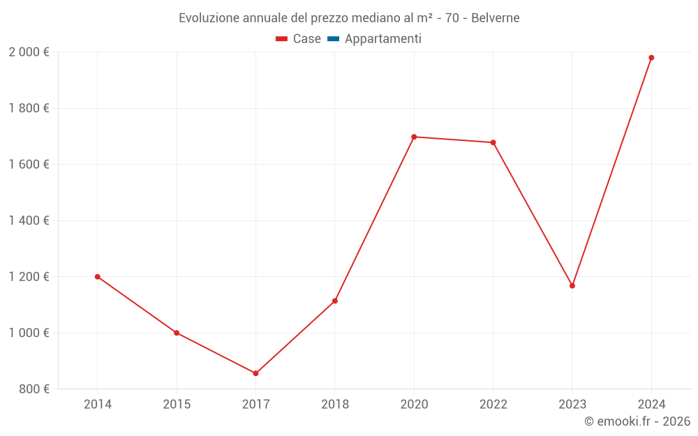 Evoluzione del prezzo mediano al m² degli appartamenti