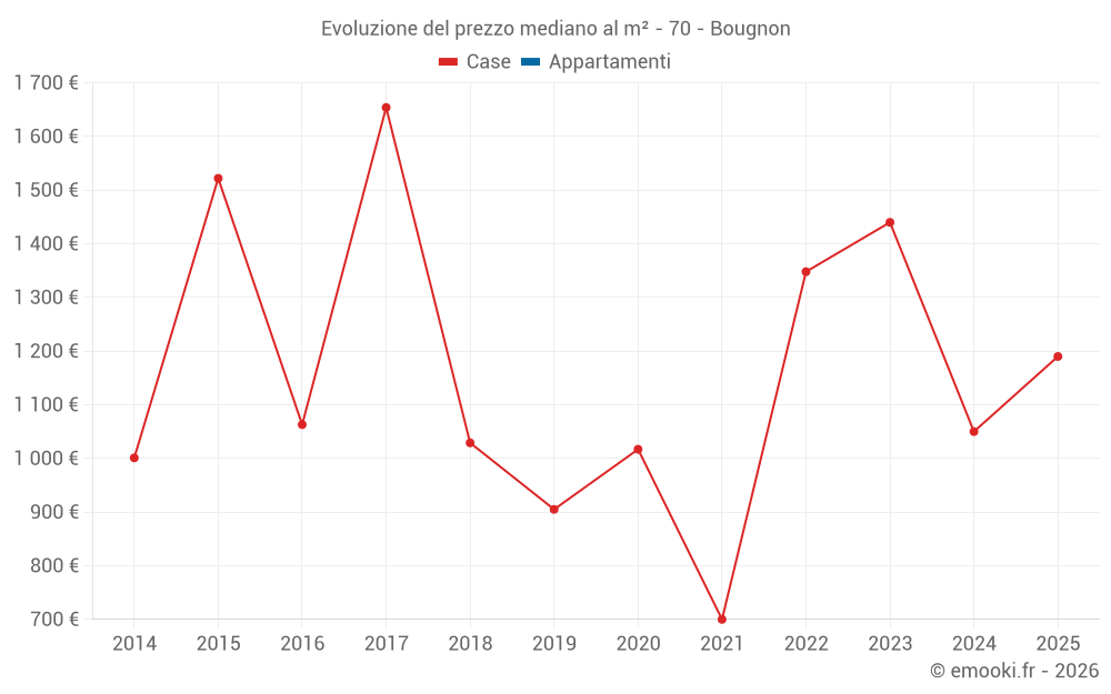 Il prezzo mediano sulle 16 transazioni di case degli ultimi 24 mesi nel comune di Bougnon era di 1 404 € al metro quadrato per un valore patrimoniale mediano di 148 250 €. In questo periodo il 60% delle transazioni era tra 722 e 1 552 € al metro quadrato (dal 2° all'8° decile).