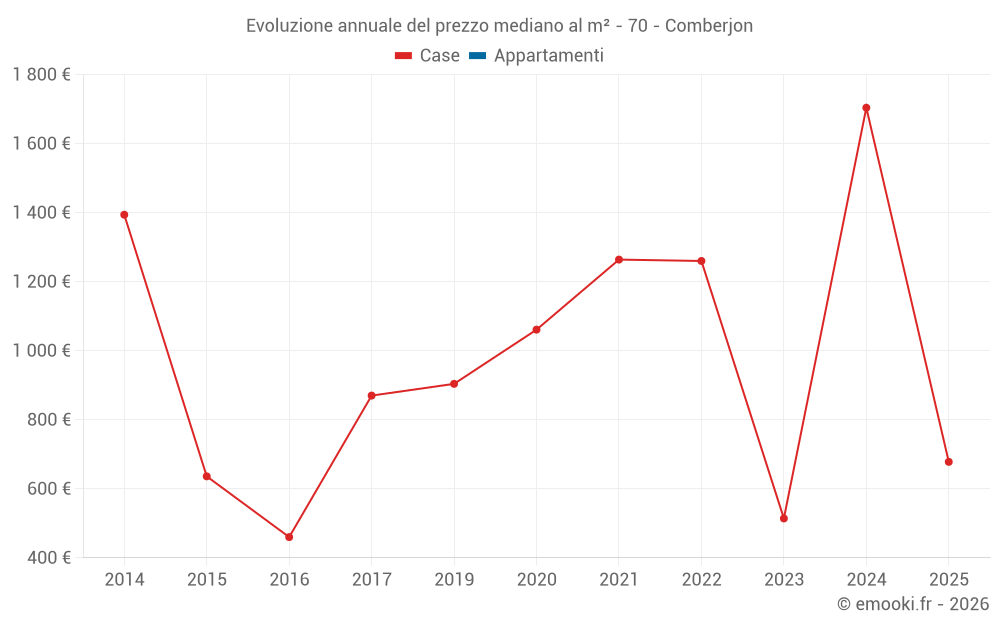 Evoluzione del prezzo mediano al m² delle case
