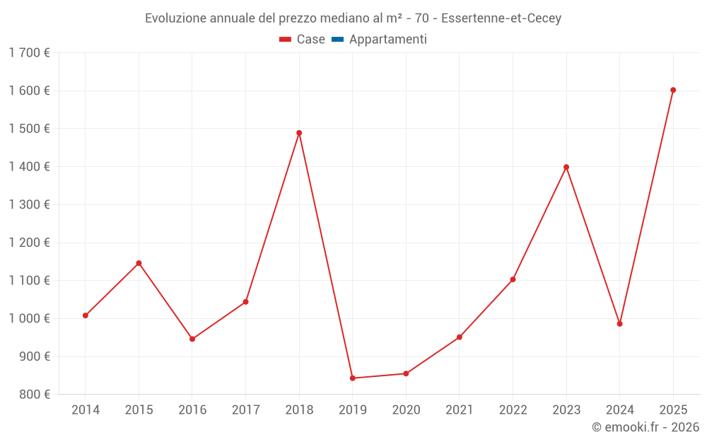 Evoluzione del prezzo mediano al m² degli appartamenti