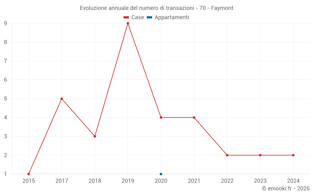Attenzione, ultimo anno incompleto. Le proiezioni sono effettuate in base alle proporzioni tra semestri dell'anno precedente a livello dipartimentale/nazionale e per tipo di proprietà .