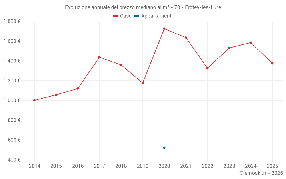 Evoluzione del prezzo mediano al m² degli appartamenti