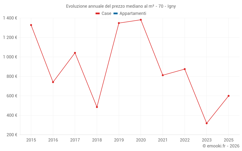 Il prezzo al m² delle case è diminuito del 55% da 6 anni, ma è aumentato del 24% in 7 anni.