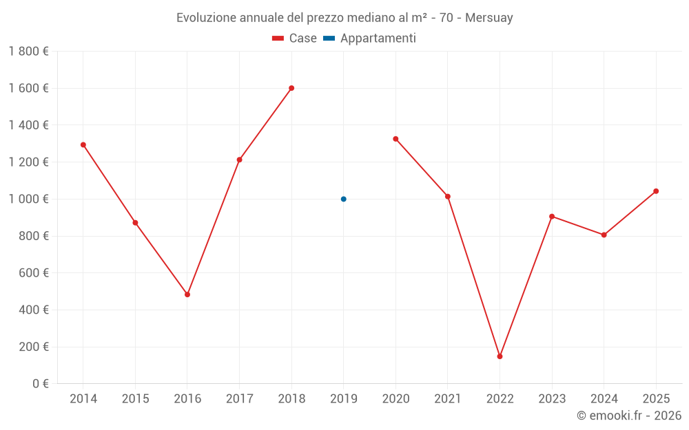 Evoluzione del prezzo mediano al m² degli appartamenti