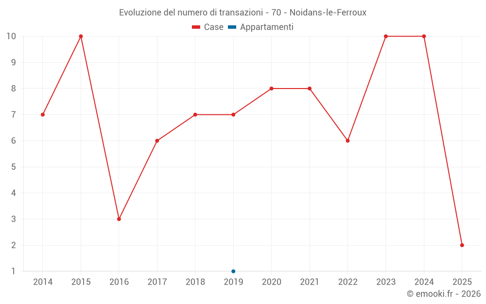 Il prezzo mediano sulle 18 transazioni di case degli ultimi 24 mesi nel comune di Noidans-le-Ferroux era di 1 136 € al metro quadrato per un valore patrimoniale mediano di 92 500 €. In questo periodo il 60% delle transazioni era tra 595 e 1 763 € al metro quadrato (dal 2° all'8° decile).