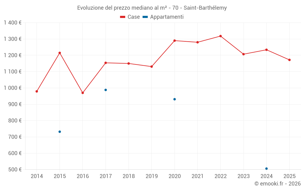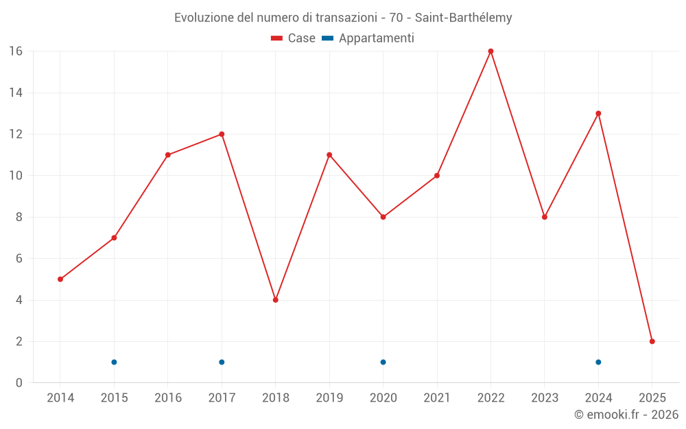 Il prezzo mediano sulle 22 transazioni di case degli ultimi 24 mesi nel comune di Saint-Barthélemy era di 1 208 € al metro quadrato per un valore patrimoniale mediano di 110 000 €. In questo periodo il 60% delle transazioni era tra 915 e 1 405 € al metro quadrato (dal 2° all'8° decile).