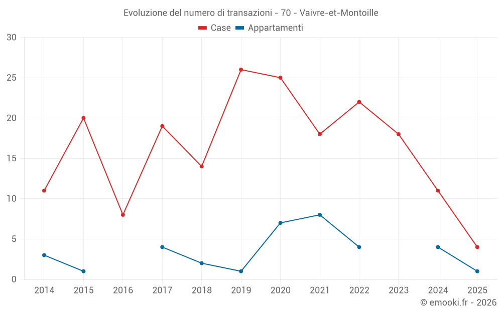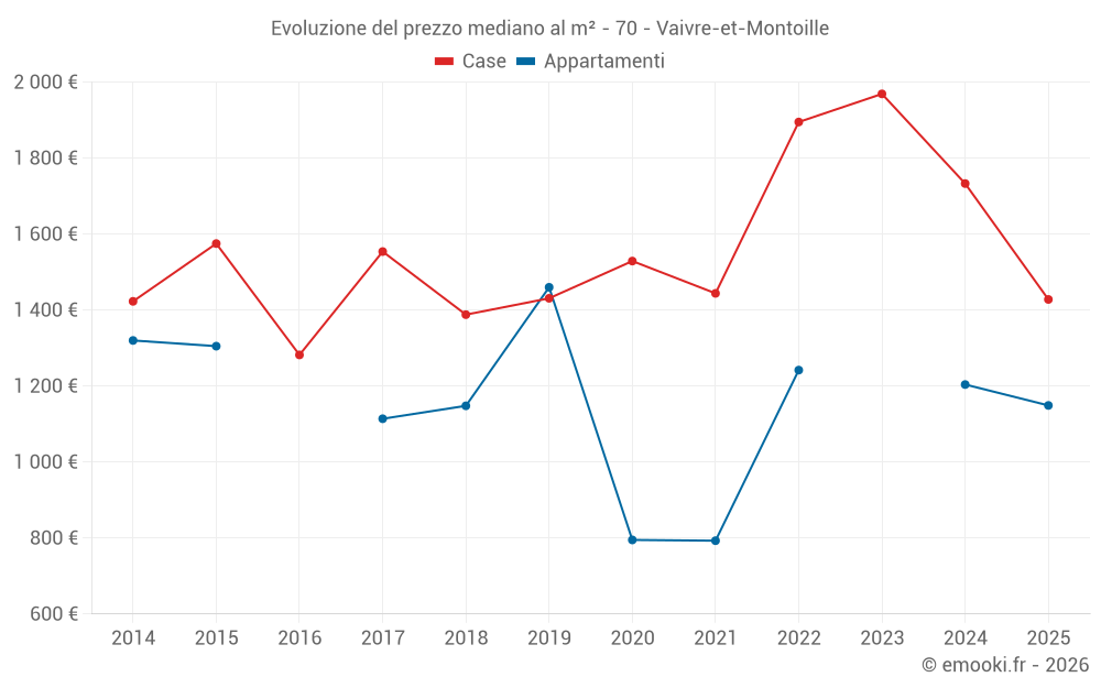 Il prezzo mediano sulle 25 transazioni di case degli ultimi 24 mesi nel comune di Vaivre-et-Montoille era di 1 738 € al metro quadrato per un valore patrimoniale mediano di 165 000 €. In questo periodo il 60% delle transazioni era tra 1 195 e 2 050 € al metro quadrato (dal 2° all'8° decile).