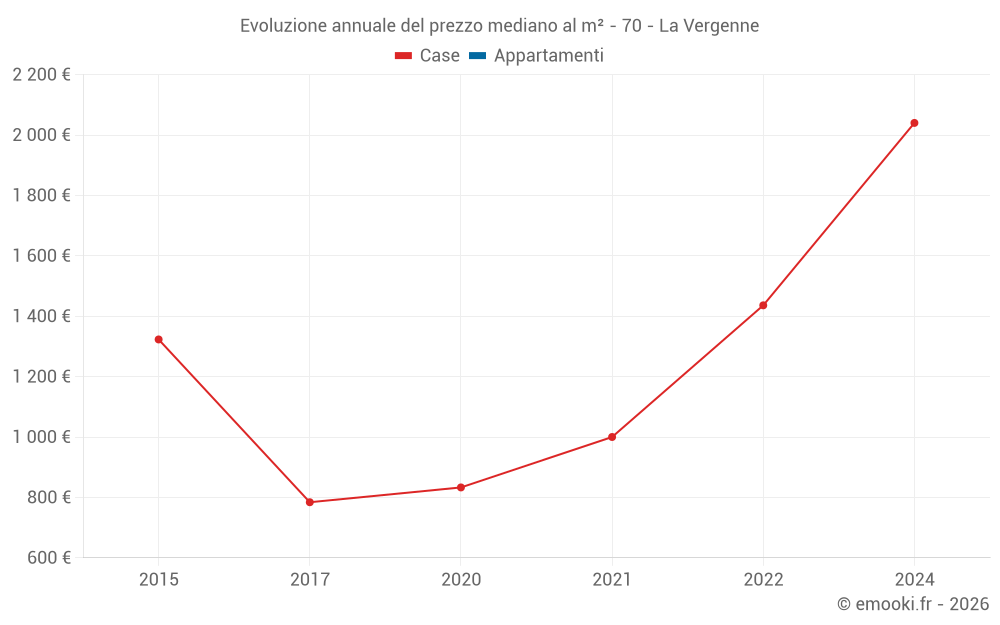 Evoluzione del prezzo mediano al m² degli appartamenti