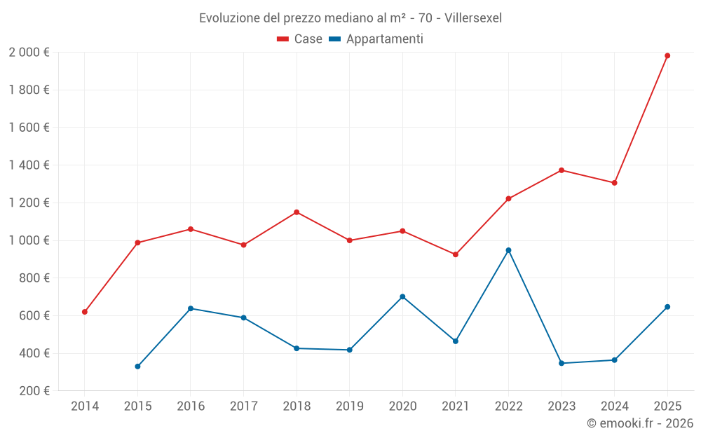 Il prezzo mediano sulle 18 transazioni di case degli ultimi 24 mesi nel comune di Villersexel era di 1 226 € al metro quadrato per un valore patrimoniale mediano di 114 650 €. In questo periodo il 60% delle transazioni era tra 667 e 1 853 € al metro quadrato (dal 2° all'8° decile).