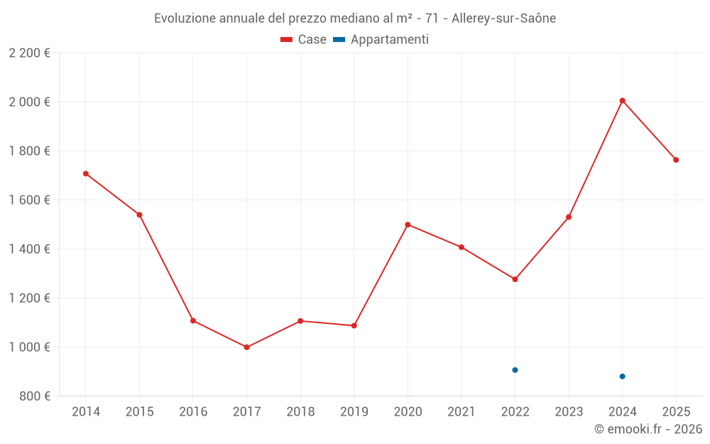 Evoluzione del prezzo mediano al m² degli appartamenti