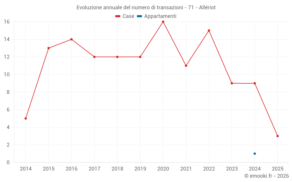 Il prezzo mediano sulle 17 transazioni di case degli ultimi 24 mesi nel comune di Allériot era di 1 977 € al metro quadrato per un valore patrimoniale mediano di 197 950 €. In questo periodo il 60% delle transazioni era tra 1 806 e 2 406 € al metro quadrato (dal 2° all'8° decile).