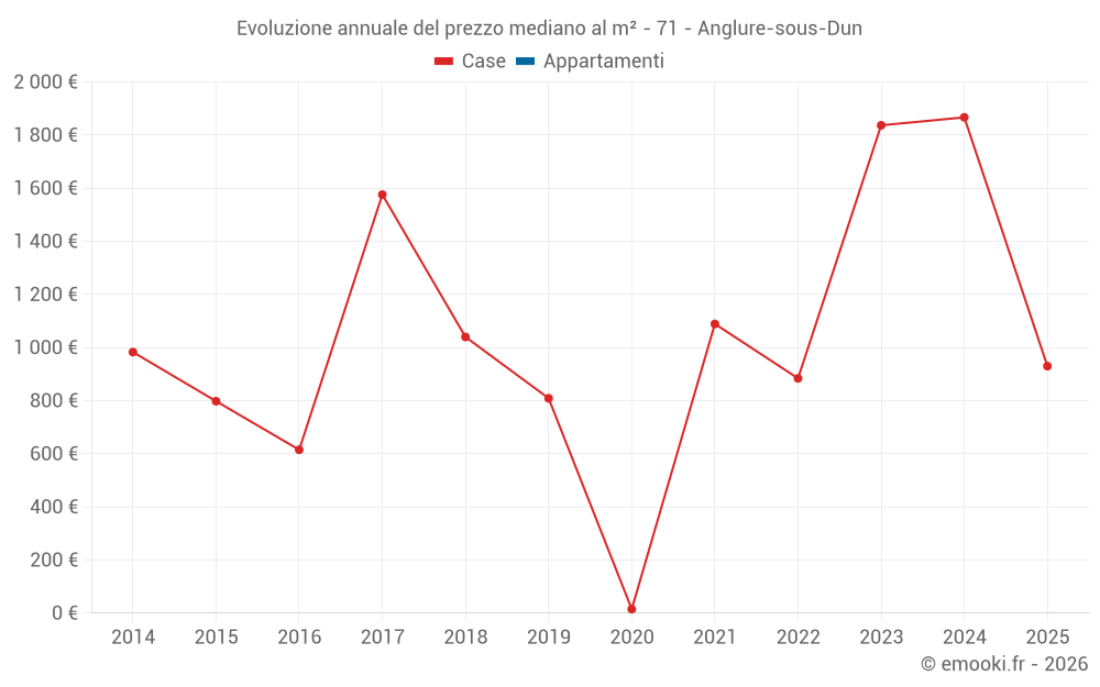 Evoluzione del prezzo mediano al m² degli appartamenti