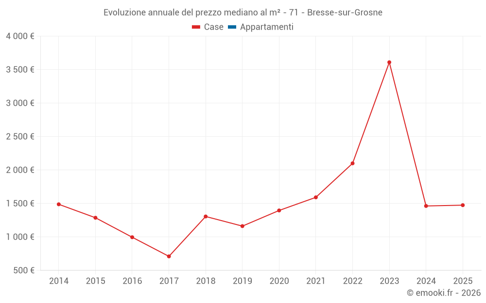 Evoluzione del prezzo mediano al m² degli appartamenti