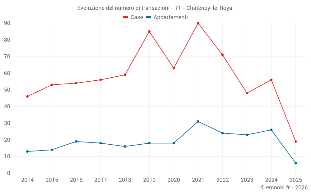 Attenzione, ultimo anno incompleto. Le proiezioni sono effettuate in base alle proporzioni tra semestri dell'anno precedente a livello dipartimentale/nazionale e per tipo di proprietà.