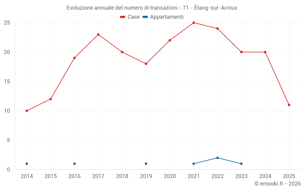 Il prezzo mediano sulle 21 transazioni di case degli ultimi 12 mesi nel comune di Étang-sur-Arroux era di 1 250 € al metro quadrato per un valore patrimoniale mediano di 126 000 €. In questo periodo il 60% delle transazioni era tra 743 e 1 826 € al metro quadrato (dal 2° all'8° decile).