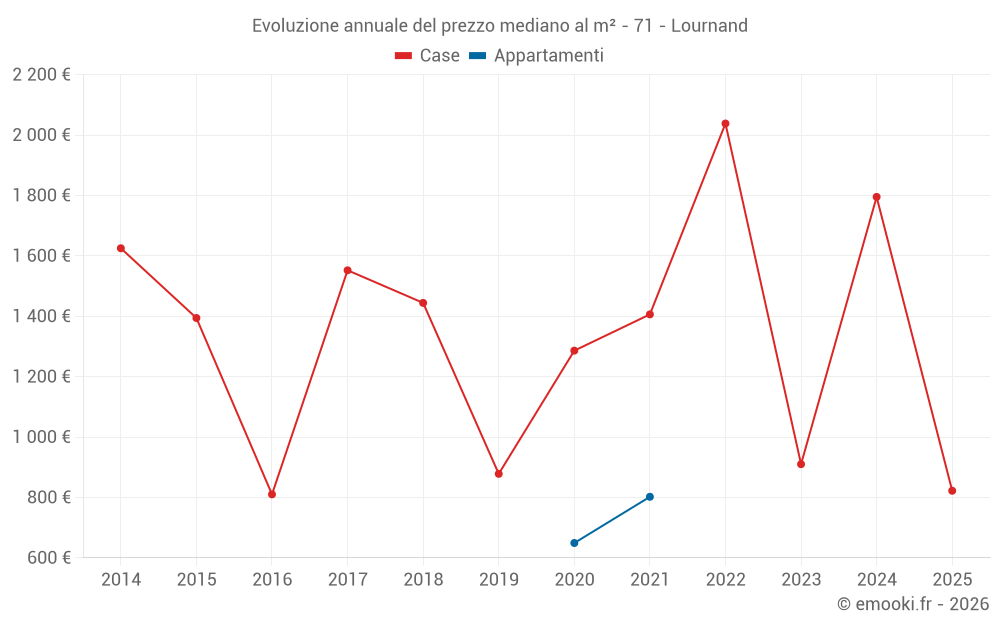 Evoluzione del prezzo mediano al m² degli appartamenti