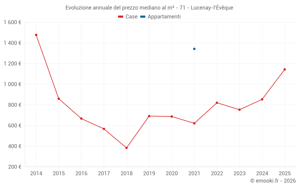 Evoluzione del prezzo mediano al m² degli appartamenti