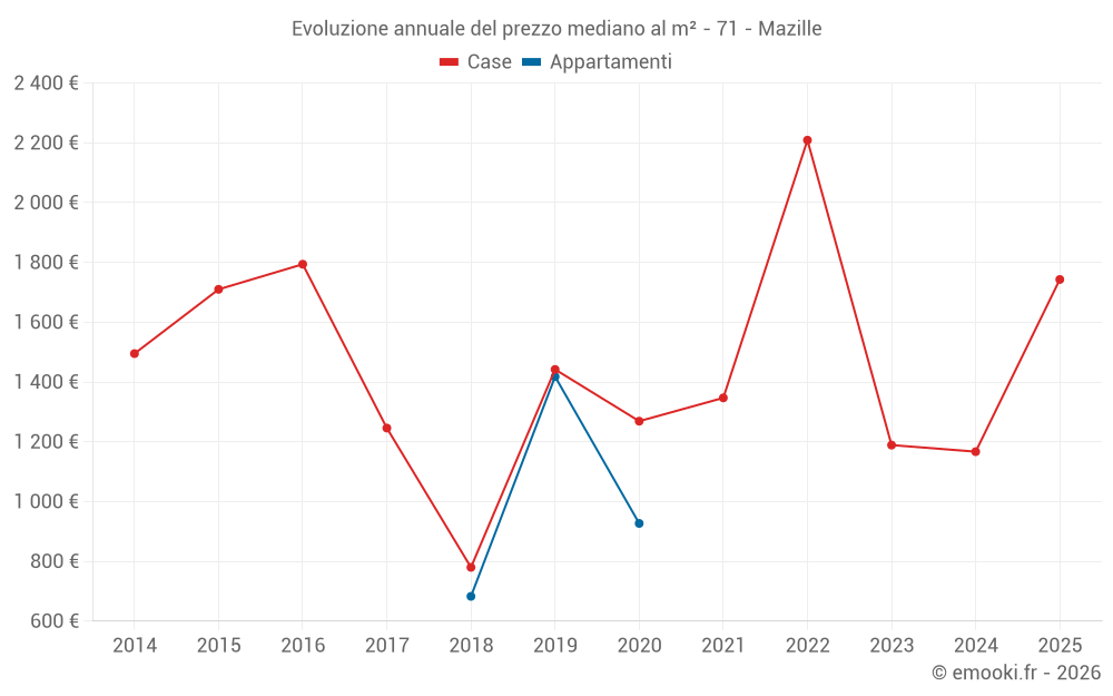 Evoluzione del prezzo mediano al m² degli appartamenti
