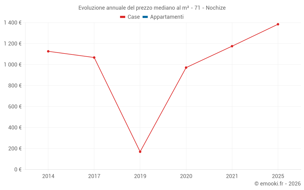 Evoluzione del prezzo mediano al m² degli appartamenti