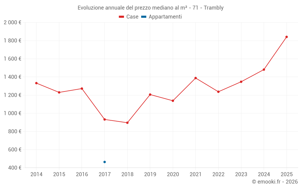 Evoluzione del prezzo mediano al m² degli appartamenti