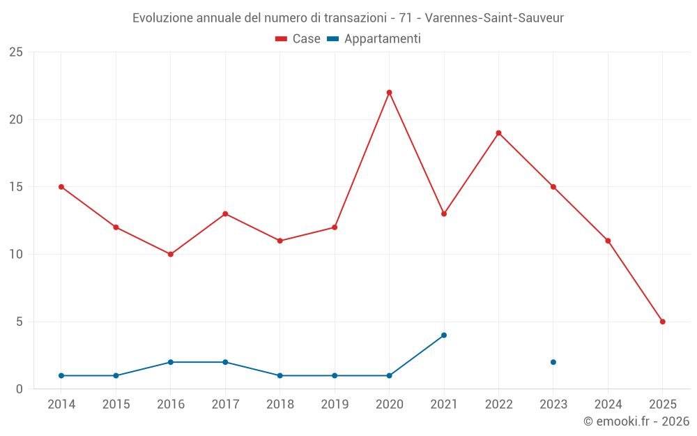 Il prezzo mediano sulle 24 transazioni di case degli ultimi 24 mesi nel comune di Varennes-Saint-Sauveur era di 1 270 € al metro quadrato per un valore patrimoniale mediano di 139 500 €. In questo periodo il 60% delle transazioni era tra 916 e 1 781 € al metro quadrato (dal 2° all'8° decile).