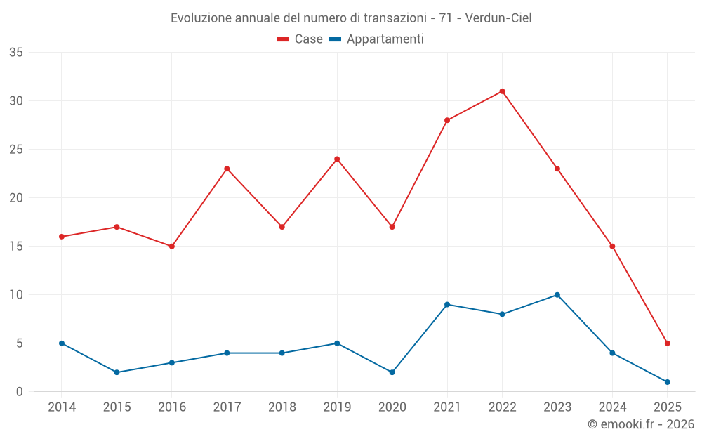 Il prezzo mediano sulle 16 transazioni di case degli ultimi 12 mesi nel comune di Verdun-Ciel era di 1 344 € al metro quadrato per un valore patrimoniale mediano di 135 800 €. In questo periodo il 60% delle transazioni era tra 838 e 1 843 € al metro quadrato (dal 2° all'8° decile).
