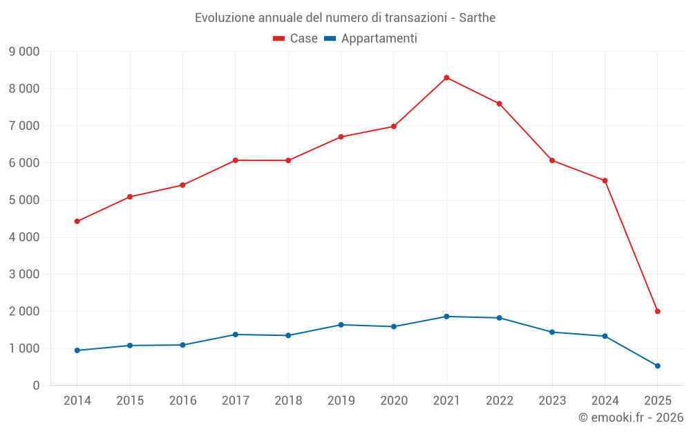 Il prezzo mediano sulle 200 transazioni di appartamenti degli ultimi 3 mesi nel dipartimento di Sarthe era di 1 752 € al metro quadrato per un valore patrimoniale mediano di 90 047 €. In questo periodo il 60% delle transazioni era tra 1 135 e 2 268 € al metro quadrato (dal 2° all'8° decile).