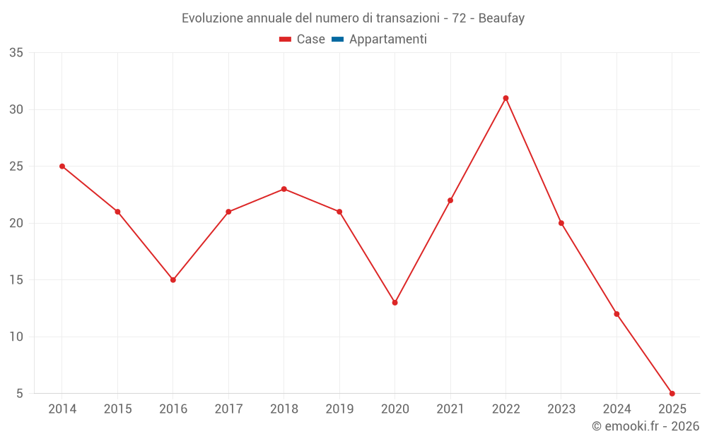 Il prezzo mediano sulle 27 transazioni di case degli ultimi 24 mesi nel comune di Beaufay era di 1 684 € al metro quadrato per un valore patrimoniale mediano di 135 000 €. In questo periodo il 60% delle transazioni era tra 1 290 e 2 147 € al metro quadrato (dal 2° all'8° decile).
