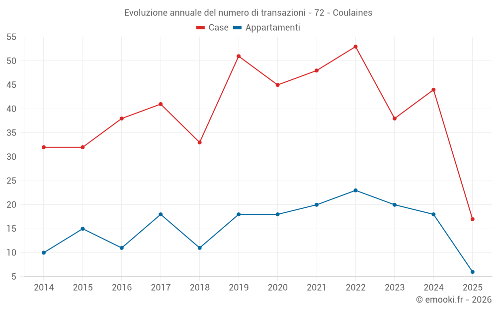 Il prezzo mediano sulle 19 transazioni di appartamenti degli ultimi 12 mesi nel comune di Coulaines era di 1 692 € al metro quadrato per un valore patrimoniale mediano di 98 850 €. In questo periodo il 60% delle transazioni era tra 1 247 e 2 123 € al metro quadrato (dal 2° all'8° decile).