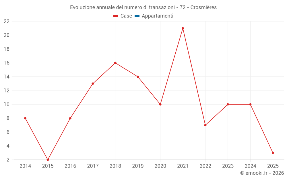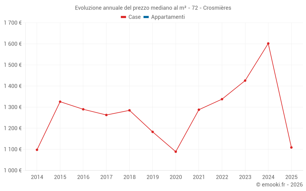 Il prezzo mediano sulle 15 transazioni di case degli ultimi 24 mesi nel comune di Crosmières era di 1 453 € al metro quadrato per un valore patrimoniale mediano di 150 000 €. In questo periodo il 60% delle transazioni era tra 1 277 e 1 649 € al metro quadrato (dal 2° all'8° decile).